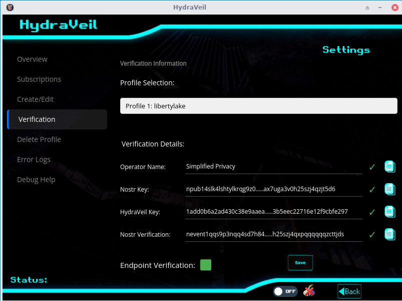 Instead of having random nodes with no way to evaluate, our network uses Nostr influencers who post (sign) to the social network their HydraVeil key.