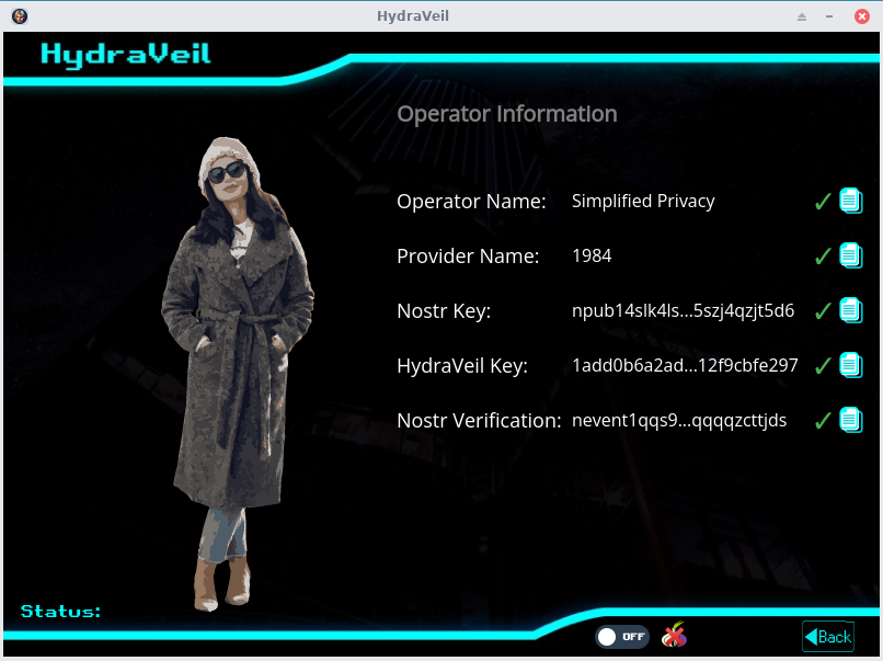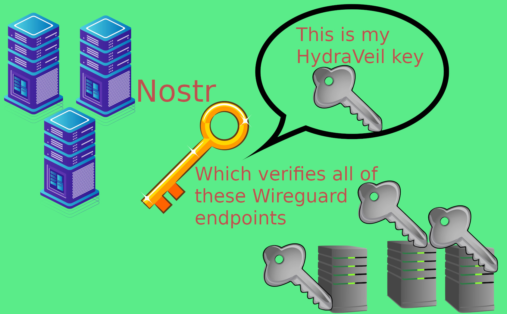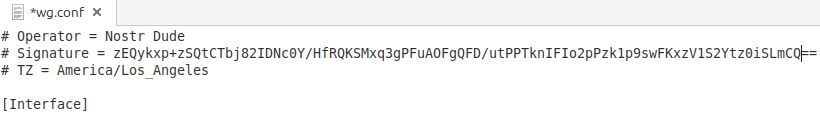 This ed25519 key is in the same format that Wireguard originally uses, and then it signs for all the others. So this way, the Operator doesn’t need to spam jibberish on Nostr each time endpoints change.