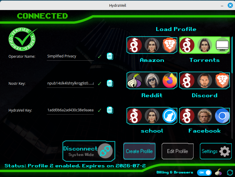 HydraVeil automatically and instantly verifies the signature prior to connecting.