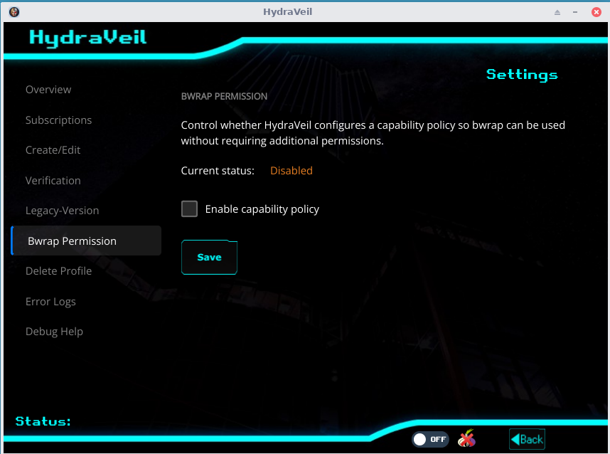 These steps are now entirely automated inside the app by enabling the “Bwrap policy”. Go to “Options” then “Bwrap Policy”